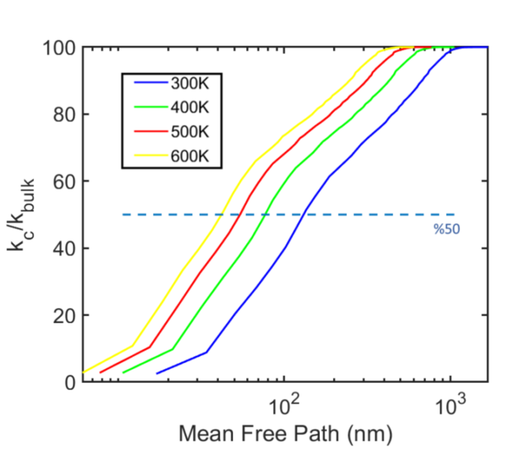 When nanoscale features, such as thin films or extremely localized heating regions are present in devices, heat transfer becomes partially ballistic. Such non-continuum effects to heat transfer is defined by the mean free path of the energy carriers. The heat carrying capacities and the mean free paths of energy carriers within a material vary significantly. Thus, it is important to know the mean free path - thermal conductivity relationship of all energy carriers inside a material to understand the impact of nanoscale effects to heat transfer. This relationship, that is still missing for many.